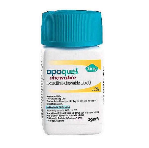 Apoquel (oclacitinib maleate) is a veterinary medicine used to treat the itching and inflammation associated with allergic dermatitis in dogs, Works by inhibiting the immune response that triggers itching, without the side effects of steroids.