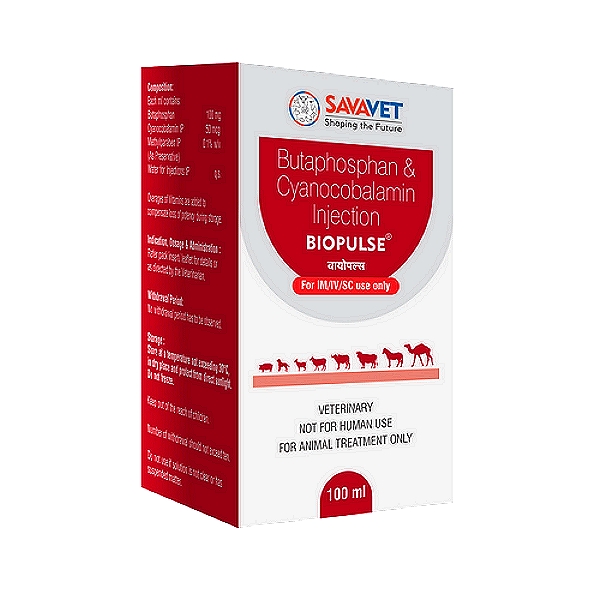 BIOPULSE contains Butaphosphan and Cyanocobalamin. Butaphosphan is an organic phosphorus source, and cyanocobalamin is a form of vitamin B12. BIOPULSE is indicated in Pica, reduced feed intake, energy deficiency.