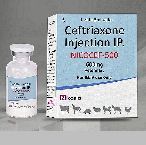 Ceftriaxone Injection is a broad-spectrum cephalosporin antibiotic used to treat bacterial infections in animals including respiratory, urinary, skin and soft tissue, bone and joint, and systemic infections such as Septicemia..