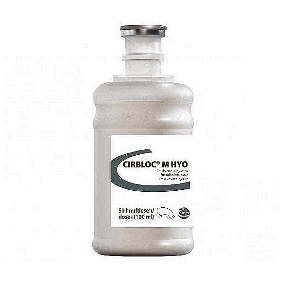 CIRBLOC M HYO (Porcine circovirus and porcine enzootic pneumonia vaccine (inactivated)) is used to protect pigs against Porcine circovirus type 2 (PCV2), and Mycoplasma hyopneumoniae (M. hyo). Stimulates active immunity, reduces viraemia, virus load in the lungs & lymphoid tissue, and virus shedding.