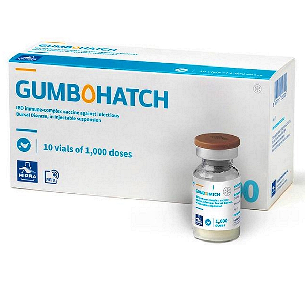 GUMBOHATCH (avian infectious bursal disease vaccine (live)) is used to protect chickens from Infectious Bursal Disease (IBD), especially as their maternal antibody levels begin to decline. Administered to 1-day-old chicks via subcutaneous injection or in ovo.