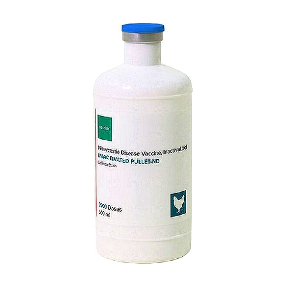 Inactivated Pullet ND Vaccine – An Inactivated LaSota adapted strain used to provide broad protection to replacement pullets against Newcastle Disease.