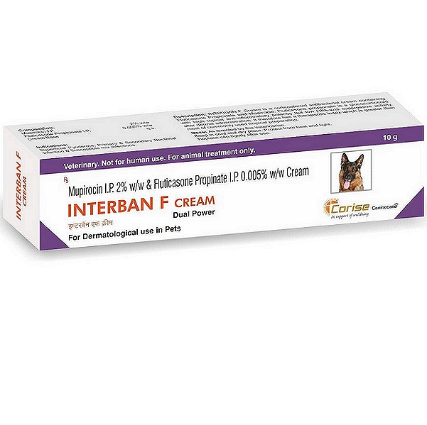 INTERBAN F Cream is used for treating bacterial skin infections in cats and dogs. An effective treatment for inflammation, atopic dermatitis and secondary skin infections such as pyoderma, lick and podo dermatitis.