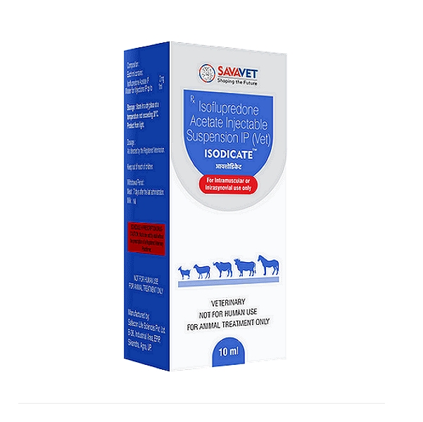 ISODICATE contains Isoflupredone acetate, a corticosteroid with anti-inflammatory activity. It is used for the relief of pain and inflammatory conditions in animals. Treatment of wide range of conditions: Ketosis, Pneumonia, Hypersensitivity, Musculo-skeletal disorders, especially arthritis, laminitis, bursitis, and myositis.