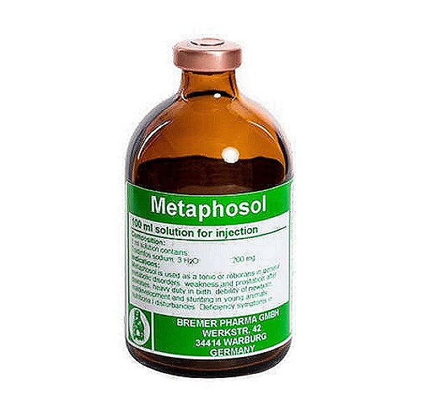 BREMER PHARMA brand Metaphosol (toldimfos sodium trihydrate) is used in the treatment and prevention of metabolic disorders. It is used in cattle, horses, sheep, goats, dogs and cats to treat cases of phosphorus deficiency. An EU Authorised medicine.