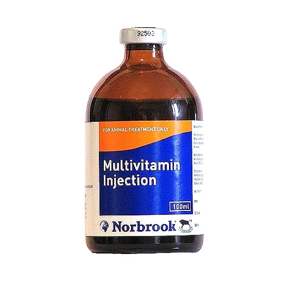 NORBROOK brand Multivitamin Injection is used to treat or prevent vitamin deficiencies in animals. Used to address deficiencies caused by illness, poor diet, or other factors, and can be administered via intramuscular or subcutaneous injection. An EU Authorised medicine.