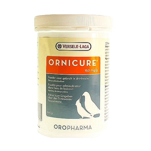 Versele-Laga brand ORNICURE Powder (doxycycline hyclate) is a veterinary medicine used to treat bacterial infections in pigeons and ornamental birds, particularly those affecting the respiratory and ocular systems. Indicated for respiratory tract infections, ornithosis, mycoplasmosis, and ocular infections in pigeons. An EU Authorised medicine.