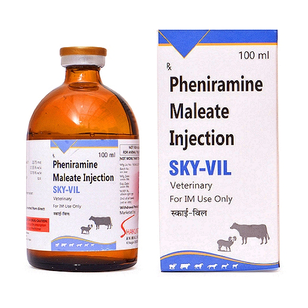 Pheniramine Maleate Injection is used to manage allergic reactions in animals. Alleviates itching, swelling and inflammation. Can also be used to treat severe allergic reactions such as anaphylaxis. Helps manage motion sickness..