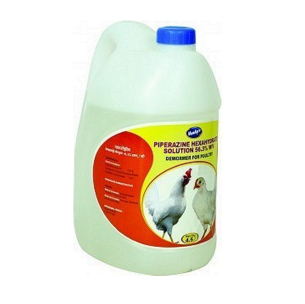 Piperazine Hexahydrate 56.3% Solution (4.5 litre)Piperazine Hexahydrate Liquid is an anthelmintic medication used to treat roundworm infections in dogs, cats, horses, swine and poultry. Targets and effectively treats roundworm infestations.