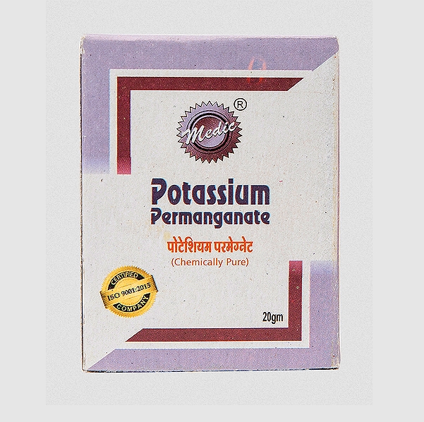 Potassium Permanganate Powder is used as an antiseptic to cleanse and disinfect wounds, preventing infections. Helps manage dermatitis, eczema, rashes, and fungal infections. Can be used as a wet dressing or bath for superficial wounds, especially those that are weeping or oozing.