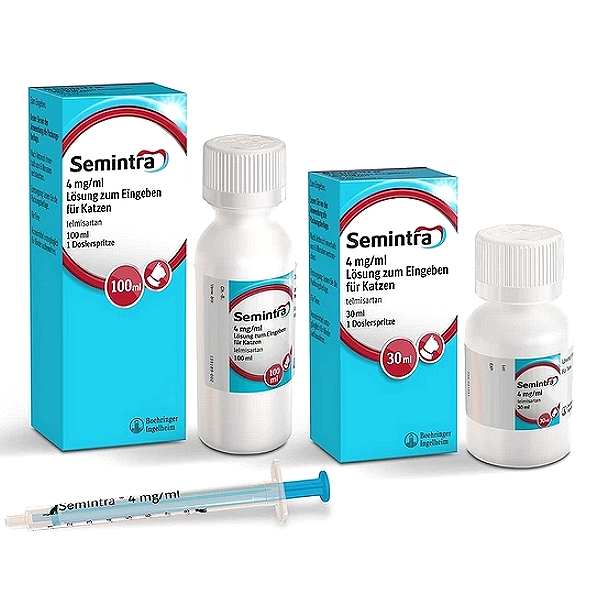 Semintra (telmisartan) is a veterinary medication used in cats and dogs to treat and manage systemic hypertension, and protein in the urine (proteinuria) due to chronic kidney disease (CKD).