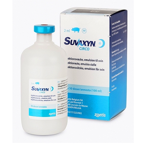 Suvazyn Circo (porcine circovirus vaccine (inactivated, recombinant)) is used in pigs to protect against Porcine Circovirus type 2 (PCV2), that can cause weight loss or failure to grow, enlarged lymph nodes, difficulty breathing, pale skin and jaundice. Suvaxyn Circo helps reduce these, viral load of PCV2 in the blood and lymphoid tissues, and fecal shedding.