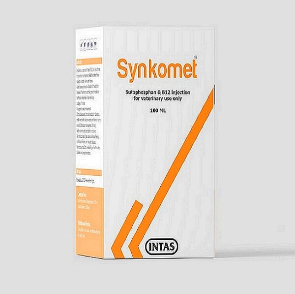 Synkomet Injection is a fast-acting metabolic and reproductive booster for livestock and pets. It combines Butaphosphan and Vitamin B12 to treat ketosis, hypocalcemia, infertility, and fatigue in animals.