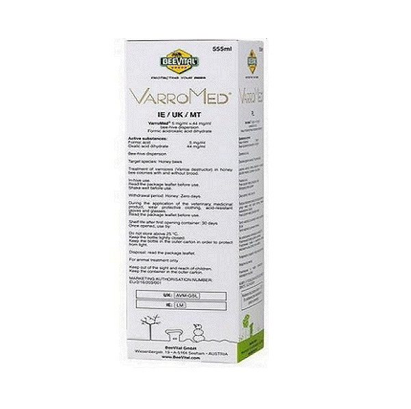 BeeVital brand VarroMed (oxalic acid dihydrate & formic acid) is a veterinary medicine used to treat varroosis in honeybee colonies. Varroosis is a disease caused by the Varroa mite, a parasite that weakens and can even kill honeybee colonies. VarroMed is a ready-to-use, liquid dispersion that is applied directly into the hive to kill the mites. An EU Authorised medicine.